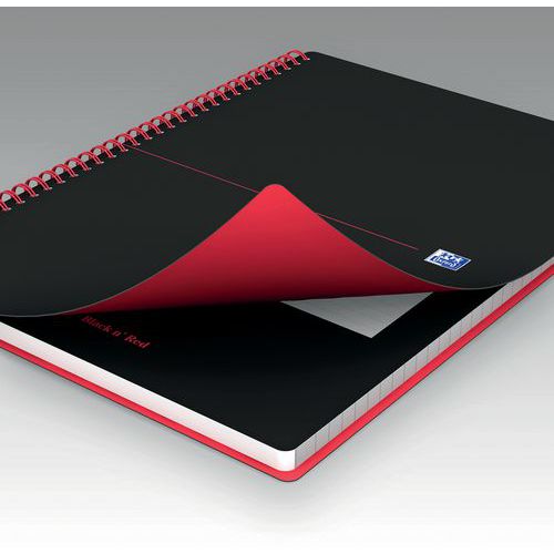 La reliure double spirale rouge est résistante et permet une ouverture du cahier à 360°, pour un maximum de flexibilité et de confort pendant l'utilisation.