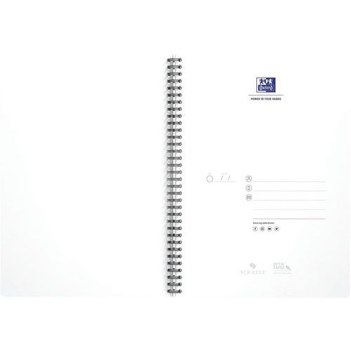 Cahier spirale avec couverture en carte souple et résistante offre une bonne flexibilité au cahier. Réglure grise est optimale et adaptée aux attentes des professionnels avec un en-tête pour noter la date et le sujet , et double marge pour les annotations. Papier unique, créé par OXFORD que l'encre ne traverse pas, d'une blancheur parfaite et au toucher extra-lisse. Reliure double spirale (aussi appelée reliure intégrale) est résistante et permet une ouverture du cahier à 360°, pour un maximum de flexibilité et de confort pendant l'utilisation. COMPATIBLE SCRIBZEE : Pour vous aider à vous retrouver dans vos notes, dans votre organisation et dans votre classement, OXFORD a conçu SCRIBZEE : une application gratuite et innovante pour scanner, sauvegarder et organiser ses notes.