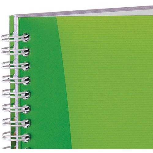 Reliure double spirale résistante, pour une ouverture du cahier à 360°, un maximum de flexibilité et de confort.