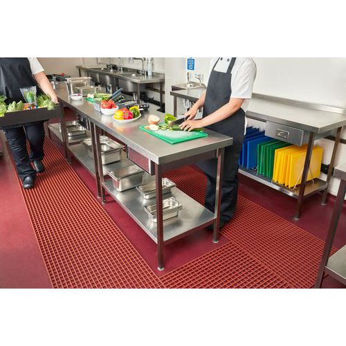 Caillebotis souple environnement alimentaire, résistant aux graisses animales. Sécurité garantie dans les zones de transformation des matières animales. Grille ajourée extra-large permettant aux déchets de passer au travers. Caillebotis fabriqué avec des additifs antifongiques et antibactériens. Facile à manipuler, nettoyage aisé pour une hygiène parfaite. Fabriqué au RU Usage tapis : Très intensif Rouleau