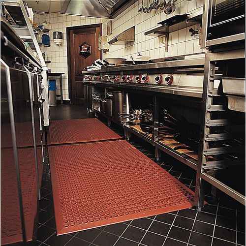 Intitulé du produit Tapis antifatigue caoutchouc polyvalent Sanitop, Largeur: 91 cm, Usage tapis: Modéré, Coloris: Rouge