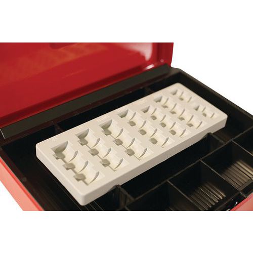 | Intitulé du produit | Caisse à monnaie Eco avec monnayeur, Coloris: Rouge, Largeur: 285 mm, Longueur: 370 mm, Hauteur: 95 mm |