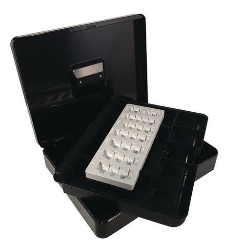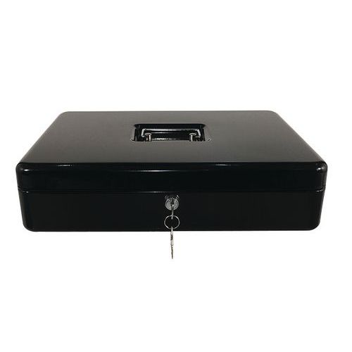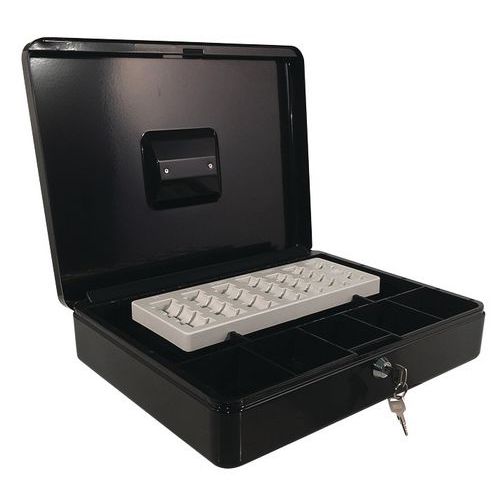 | Intitulé du produit | Caisse à monnaie Eco avec monnayeur, Coloris: Noir, Largeur: 285 mm, Longueurs: 370 mm, Hauteur: 95 mm |
