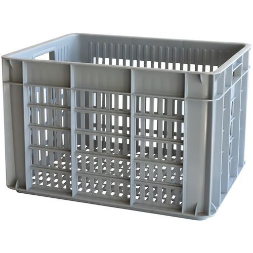Caisse ajourée idéale pour le stockage des fruits et des légumes avec un contenu aéré. Poignées intégrées ergonomiques pour facilité la manutention. Très résistante en utilisation intensive.