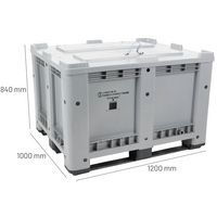 Caisse-palette à couvercle agréée ADR/UN, Capacité: 610 L, Charge maxi: 510 kg, Hauteur hors tout: 840 mm Caisse-palette à couvercle agréée ADR/UN, Capacité: 610 L, Charge maxi: 510 kg, Hauteur hors tout: 840 mm