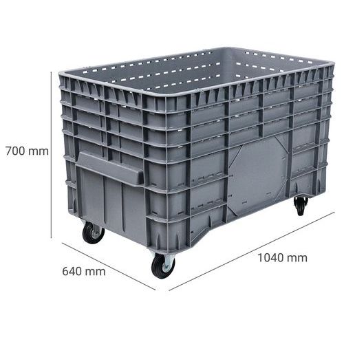 | Intitulé du produit | Caisse-palette empilable, Capacité: 300 L, Charge maxi: 120 kg, Hauteur hors tout: 700 mm |