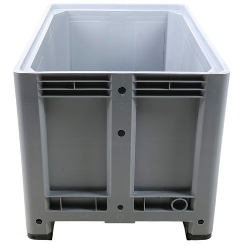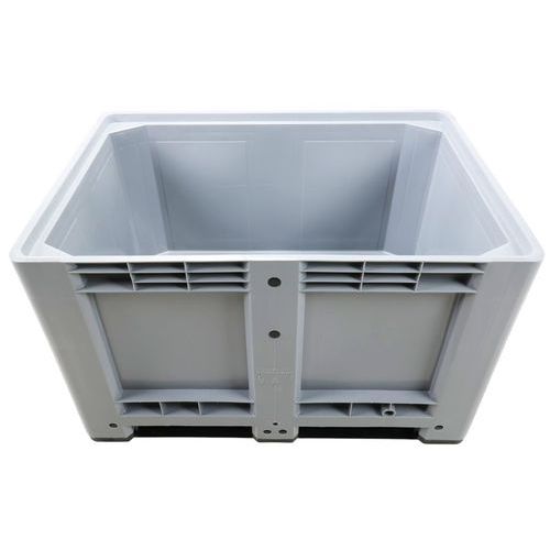 Caisse plastique à parois latérales et fond pleins. Conçue pour une résistance parfaite au gel. Capacité charge : 3500 kg maximum empilée. Caisse-palette offrant une excellente stabilité.