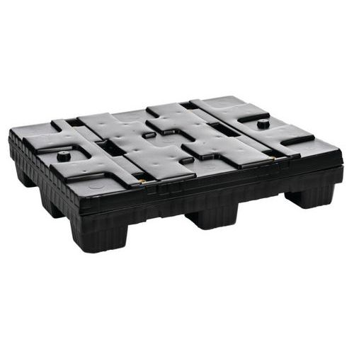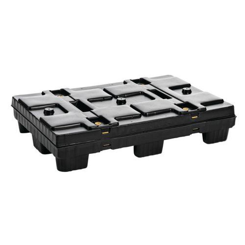 Pratique, grâce à l'abattant de prélèvement sur le long côté ce qui facilite l'accès. Compacte : une fois repliée, la Mega-Pack prend moins de place que les caisses palettes rigides. Transport économique et entreposage à encombrement réduit. Hygiénique et facile à nettoyer. La palette de base est emboîtable et peut être chargée depuis n'importe quel côté. Avec porte-documents, donc idéale pour tous les transports. Pliée, 250 mm de hauteur seulement !