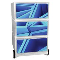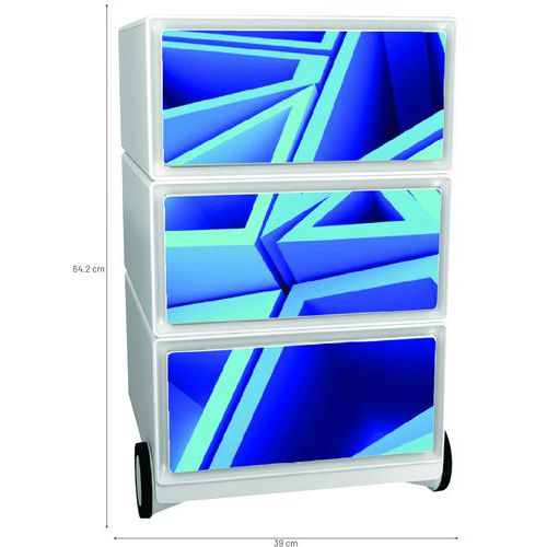 Caisson avec 3 tiroirs Easy Office Décor. Livré monté. Façade tiroirs en ABS. Equipé de 4 roulettes dont 2 multidirectionnelles à l'arrière. Largeur et hauteur et profondeur utiles tiroir 32,5 x 13,3 x 40,5 cm. Fabriqué en UE Garantie client : 10 ans