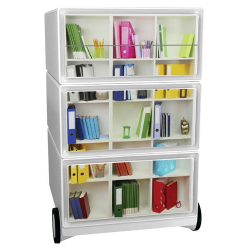 Caisson avec 4 tiroirs Easy Office Décor. Livré monté. Façade tiroirs en ABS. Equipé de 4 roulettes dont 2 multidirectionnelles à l'arrière. Largeur et hauteur et profondeur utiles tiroir 32,5 x 13,3 x 40,5 cm. Fabriqué en UE Garantie client : 10 ans