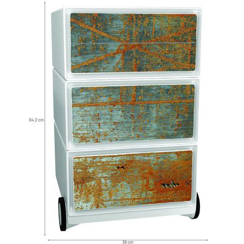 Caisson avec 4 tiroirs Easy Office Décor. Livré monté. Façade tiroirs en ABS. Equipé de 4 roulettes dont 2 multidirectionnelles à l'arrière. Largeur et hauteur et profondeur utiles tiroir 32,5 x 13,3 x 40,5 cm. Fabriqué en UE Garantie client : 10 ans