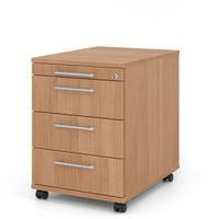 Caisson mobile à 3 tiroirs poignée plastique - P 58cm. Verrouillage centrale. Auto-encuit. Tiroir ORGA. Doté d'un corps en erable.
