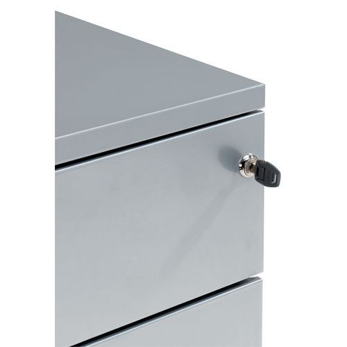 - Les tiroirs se referment à l’aide de la serrure à cylindre centrale.