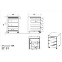 Caisson mobile GW-Profi 2.0, Matériau: Aggloméré, Hauteur hors tout: 610 mm, Nb de tiroirs: 4