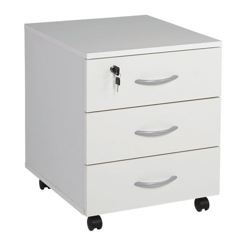 Structure panneau de particules épaisseur 16 mm Tiroir du haut avec serrure à clés ( clés fournies). Caisson ne pouvant être équipé d'un plumier amovible. Livré prêt à monter avec notice.
