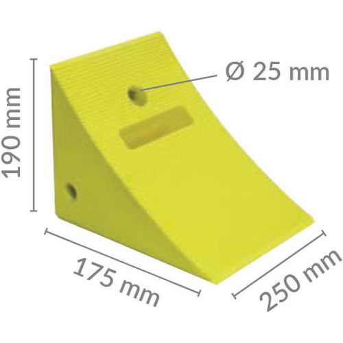 | Intitulé du produit | Cale d'immobilisation, Nb de pièces: 1, Coloris: Jaune, Longueur: 175 mm, Largeur: 250 mm, Hauteur: 190 mm |