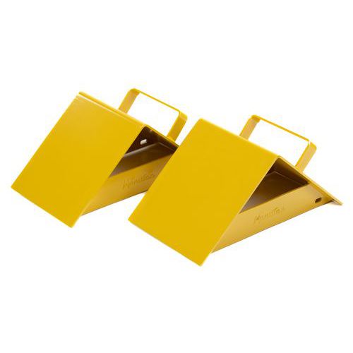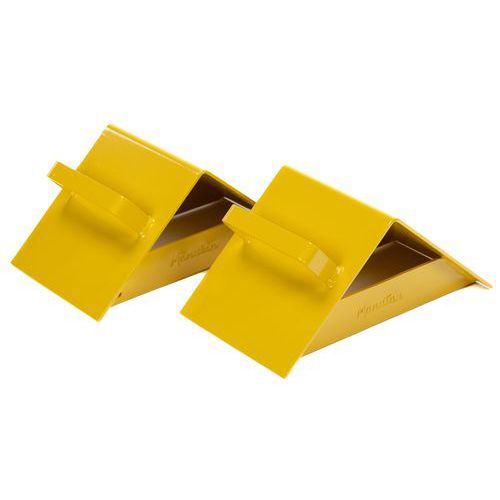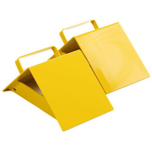 Cale roue camion en métal jaune avec poignée - Manutan Expert