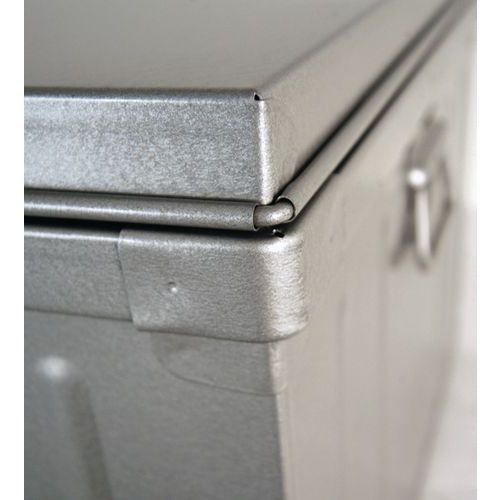 Cantine ultra-résistante en matériau tôle d'acier XC ép 5/10 mm. Résistance à la superposition grâce aux renforts supérieurs soudés. Fond avec autres renforts soudés pour une protection accrue aux chocs. Conception intelligente : robustesse mais légèreté grâce aux parois nervurées. Modèle de cantine déposé et breveté garantissant une fabrication française de qualité. Rangez, classez, protégez, transportez et mille fois plus encore