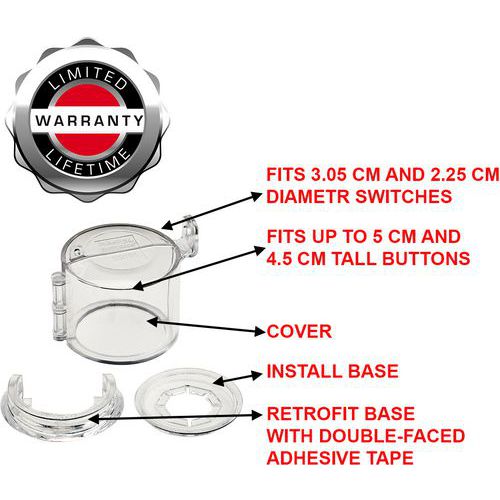 - Convient à la fois aux interrupteurs de 30,5 mm et 22,5 mm de diamètre et aux boutons de 50 mm de diamètre et 45 mm de hauteur maximum.