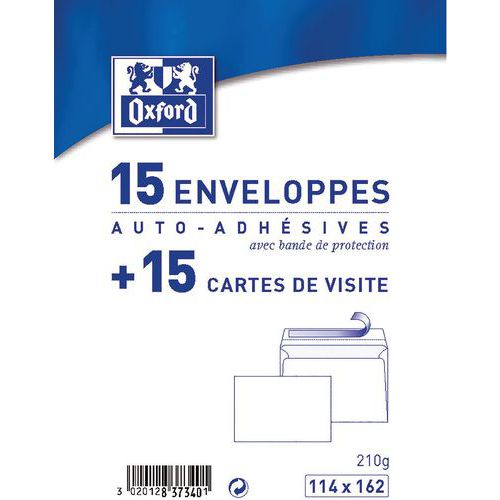 | Intitulé du produit | Cartes de visite + 15 enveloppes 114x162, Avec fenêtre: non, Coloris: Blanc, Hauteur: 162 mm |