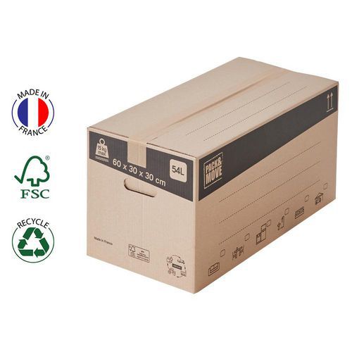 Ces cartons Pack & Move dotés de poignées latérales vous permettront de transporter tous vos objets fragiles. De conception pratique et robuste, ils protégeront tous vos objets comme vos livres, vases ou abat-jours. Ces caisses de déménagement sont pratiques et résistantes.