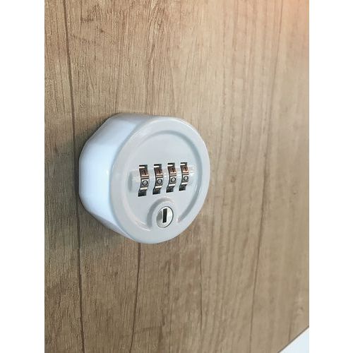 | Données techniques | Patins de réglage Ø 55 mm / H 2,5 cm pour compenser les défauts de planéité du sol (ou socle H 13,5 cm optionnel). Dimensions utiles d'1 case : P 42,5 x H 37 x L 37 cm. Portes standards (H 38 x L 38 cm) ou avec fente courrier (H 35,5 x L 38 cm), en panneau mélaminé Structurex®ép. 16 mm, munies d'une poignée serrure à code et d'un amortisseur de fermeture. |