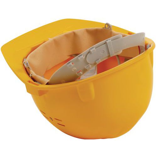 Casque de protection ventilé Classic II - Manutan Expert Casque de protection ajustable en PE HD traité anti UV. Traçabilité : date de fabrication et identification du lot mentionnées sous la visière.