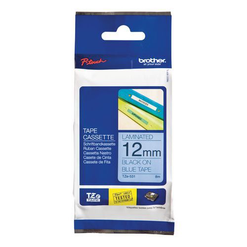 Cassette de ruban pour étiqueteuse Brother, Fond coloris: Bleu, Type de produit: TZE-531, Ruban longueur: 8 m