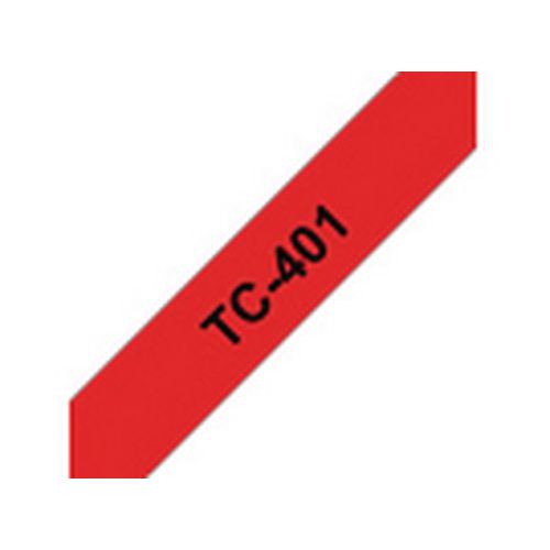 Cassette de ruban pour étiqueteuses Brother, Fond coloris: Rouge, Type: TC401, Ruban longueur: 7.7 m