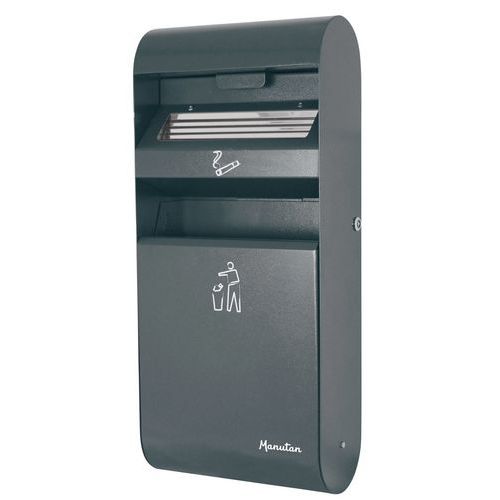 | Intitulé du produit | Cendrier-poubelle mural, Cendrier capacité: 3 L, Coloris: Gris foncé, Matériaux: Acier, Hauteur: 68 cm |