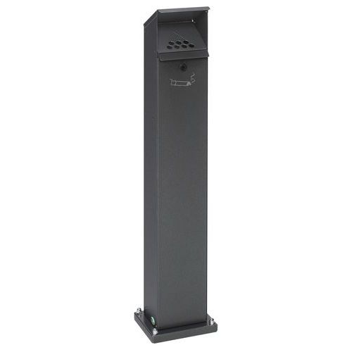 Cendrier sur pied farbiqué en tôle d‘acier galvanisé. Revêtement par poudre polyester epoxy ou en INOX. Le cendrier est équipé d‘une serrure (1 clé) et d‘une plaque de fixation. Cendrier attractif pour l‘extérieur !