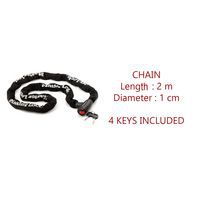 Intitulé du produit | Chaîne antivol avec serrure intégrée, Ø: 10 mm, Longueur: 2000 mm, Nb de clés: 4, Poids du produit: 4.195 kg |