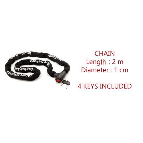 | Intitulé du produit | Chaîne antivol avec serrure intégrée, Ø: 10 mm, Longueur: 2000 mm, Nb de clés: 4, Poids du produit: 4.195 kg |