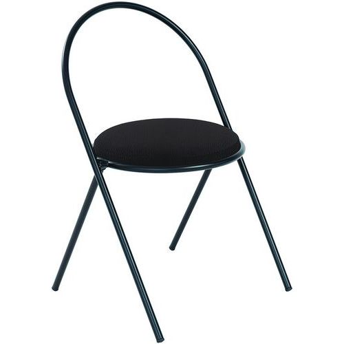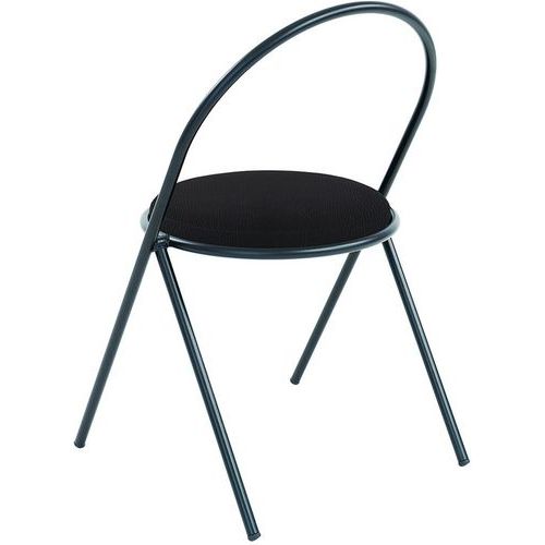 Chaise avec galette en simili-cuir Saturne. Structure avec tube Ø30 mm en acier, finition époxy. Assise à panneau de particules, épaisseur 15 mm. Simili-cuir, non déhoussable. Garniture en mousse polyuréthane 30 kg/m3, épaisseur 30 mm.