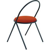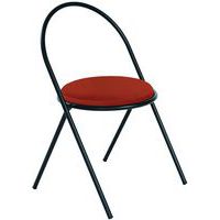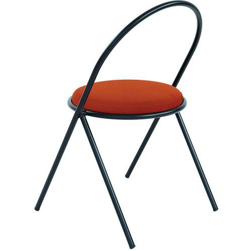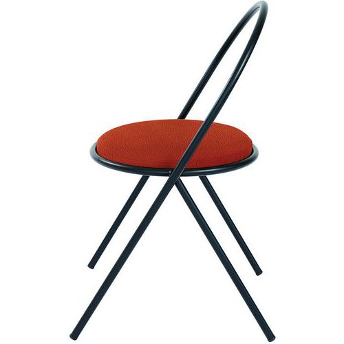 Chaise avec galette en simili-cuir Saturne. Structure avec tube Ø30 mm en acier, finition époxy. Assise à panneau de particules, épaisseur 15 mm. Simili-cuir, non déhoussable. Garniture en mousse polyuréthane 30 kg/m3, épaisseur 30 mm.