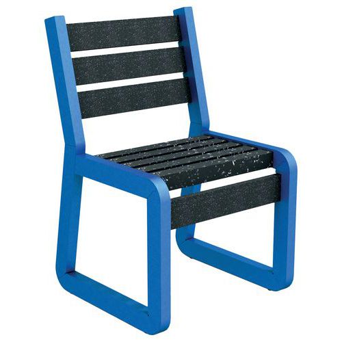 Chaise Chardonnay primaire en Ipra, matière produite à partir de plastiques multi composants. Résistance au gel, à la mousse, aux UV, lisse sans risque d'écharde, traitement anti tags, nettoyage à l'eau. Structure aluminium laqué : métal léger qui a une grande résistance à la corrosion. Sans entretien, sans traitement, imputrescible. Durée de vie accrue par rapport aux modèles en bois et en plastiques. Garantie : 25 ans sur l'Ipra, 10 ans sur l'alu Fabrication à partir de matières recyclées : canettes, pots de fleurs, aluminium...Classement au feu M4. Kit de fixation fourni
