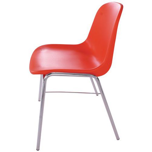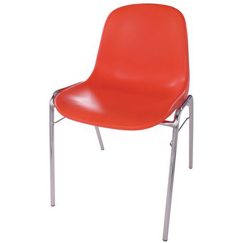 Chaise empilable par10. Patins de protection antidérapants. Monocoque robuste en polypropylène injecté. Idéale pour mettre de la couleur dans vos réunions. Supporte une charge maximum de 90 kg.