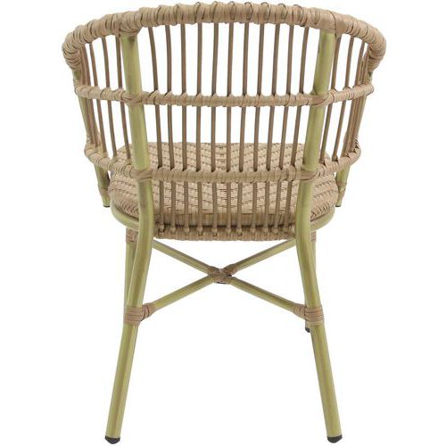 - Assise et dossier en rotin PE , un matériau résistant aux UV et aux intempéries.