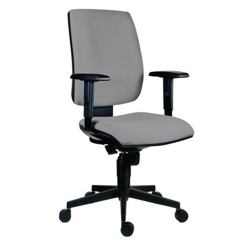 Chaises de bureau rembourrées avec mécanisme synchrone et possibilité de réglage continu de l'angle de l'assise et du dossier. L'avantage est le réglage de la rigidité du mécanisme en fonction du poids corporel de l'utilisateur et le réglage facile de la hauteur du dossier par le système haut-bas.