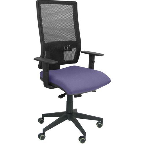 Chaise de bureau Horna - Piqueras y Crespo avec mécanisme synchro et régulateur de tension. Dossier en maille respirante pour un confort optimal. Siège rembourré personnalisable en tissu et couleur. Bras et support lombaire réglables pour s'adapter à votre morphologie.