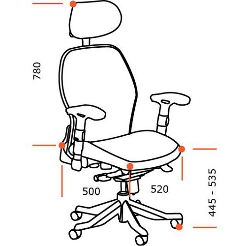 | Intitulé du produit | Chaise de bureau Oklahoma, Avec accoudoir: oui, Type de pied: Roulettes, Assise matériau: Tissu, Têtière: oui |