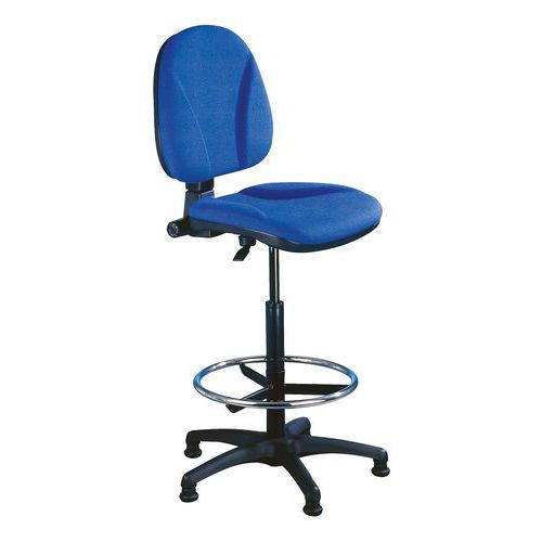 Chaise de travail rembourrée équipée d'un dossier réglable en hauteur avec une inclinaison réglable mécaniquement. La chaise comprend un repose-pieds tout autour chromé. La housse en tissu est en acrylique, la chaise a une capacité de charge de 12 kg.