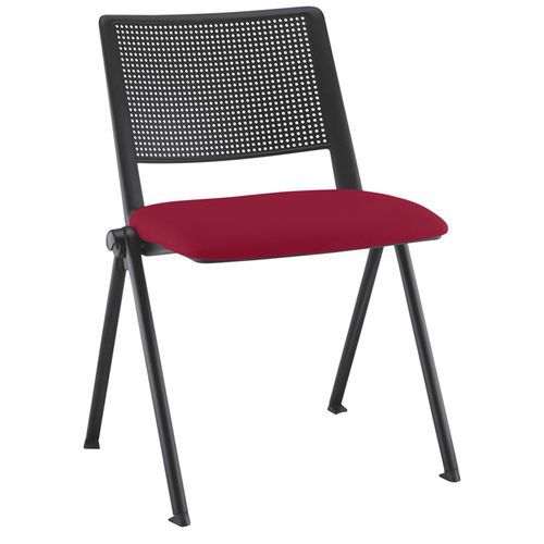 Chaise empilable Match de Sokoa. Empilable par 12 pour un gain de place optimal. Assise garnie de mousse d'une densité de 20 kg/m3 pour un confort optimal. Tissu polyester classé au feu M1 pour une sécurité accrue. Equipée d'un système d'accroche pour un empilage parfaitement vertical.