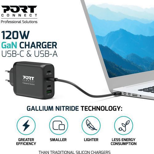 Chargeur secteur 120W Type C avec câble inclus - Port Connect