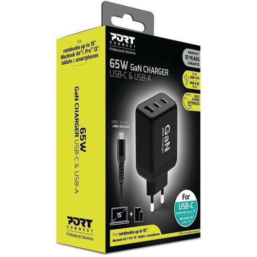 Chargeur secteur 65W Type C avec câble inclus - Port Connect