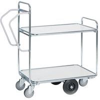 Chariot 2 plateaux, idéal pour la prise des pièces dans les allées étroites en boutique ou entrepôt. Le montage à deux roues centrales sous le chariot le rend facile à tourner même ayant une charge lourde.