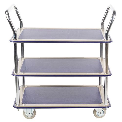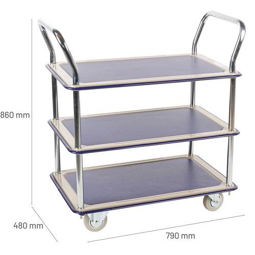 | Intitulé du produit | Chariot 3 plateaux, Roulette Ø: 100 mm, Force: 120 kg, Hauteur hors tout: 860 mm, Largeur hors tout: 480 mm |