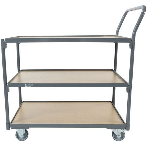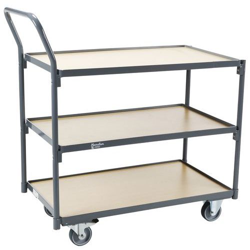 Chariot 3 plateaux poignée verticale -250 kg - Manutan Expert