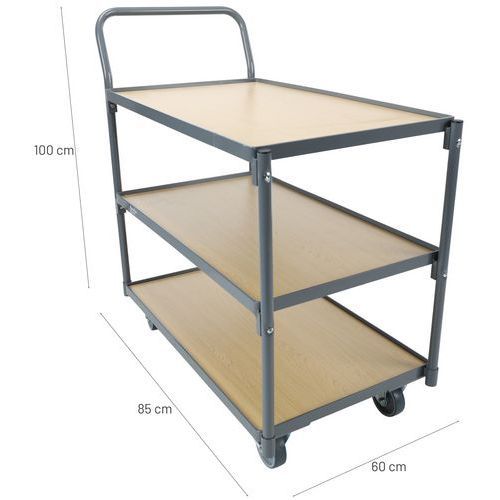 Chariot 3 plateaux poignée verticale -250 kg - Manutan Expert