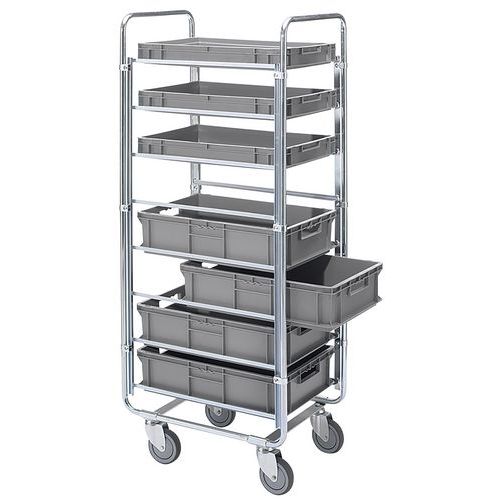 | Intitulé du produit | Chariot à bacs, Force: 200 kg, Hauteur hors tout: 1585 mm, Largeur hors tout: 465 mm |